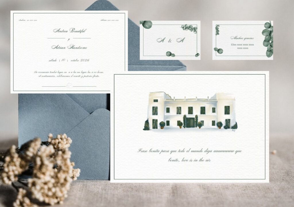 Ilustro espacios, detalles y elementos que forman parte de vuestra historia para crear una papelería única y personal.