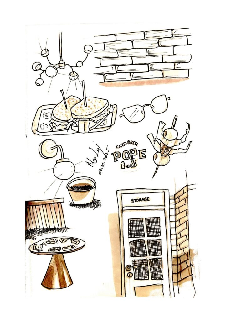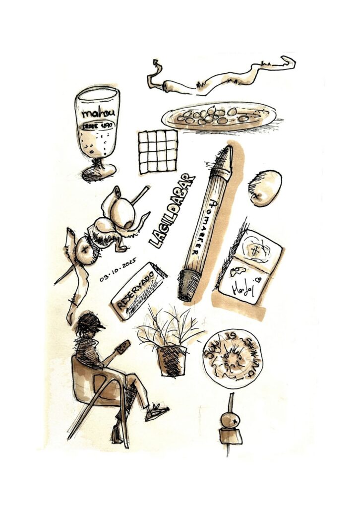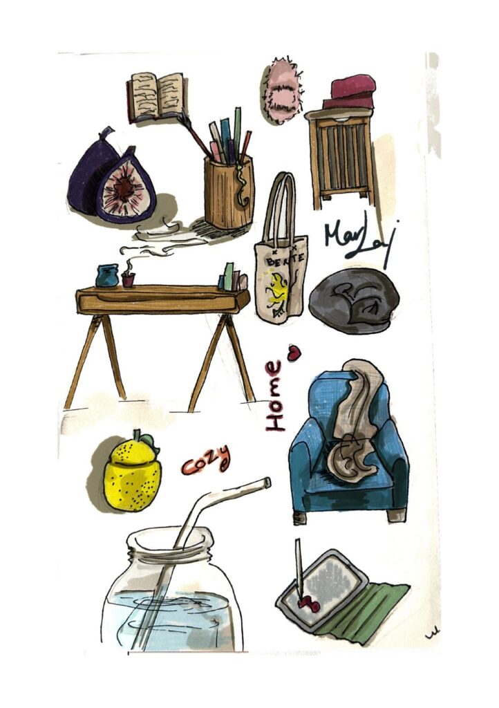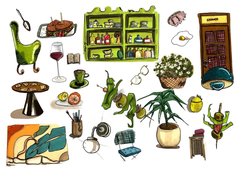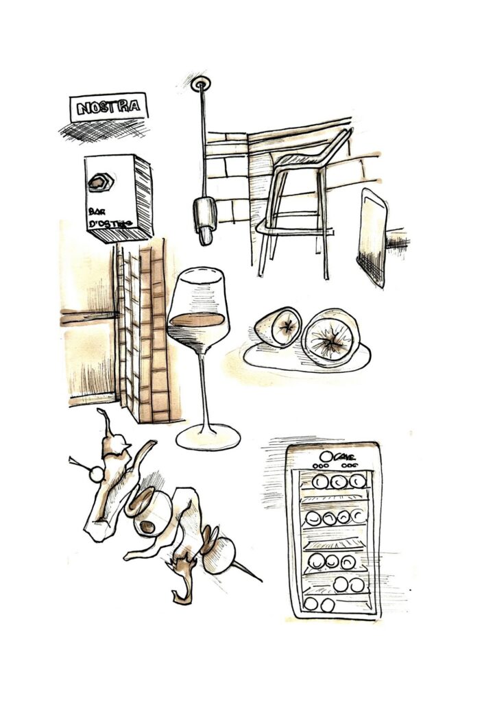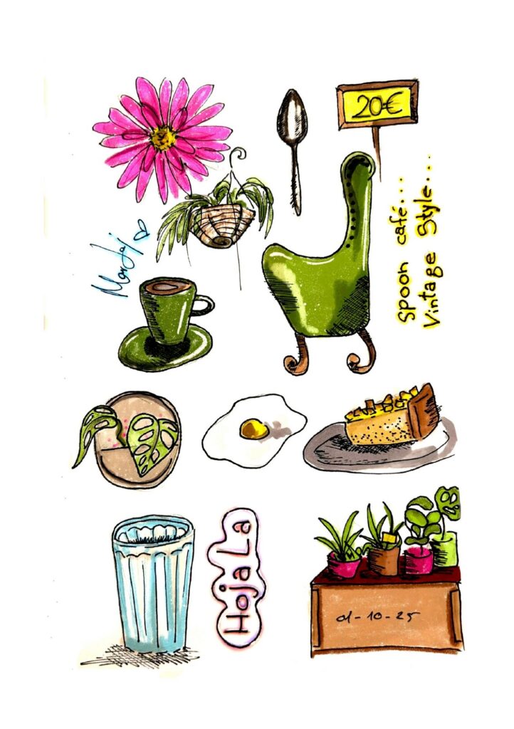 A través de líneas intuitivas y espontáneas, interpreto locales, hogares y rincones cotidianos, capturando su atmósfera más allá de lo visible.